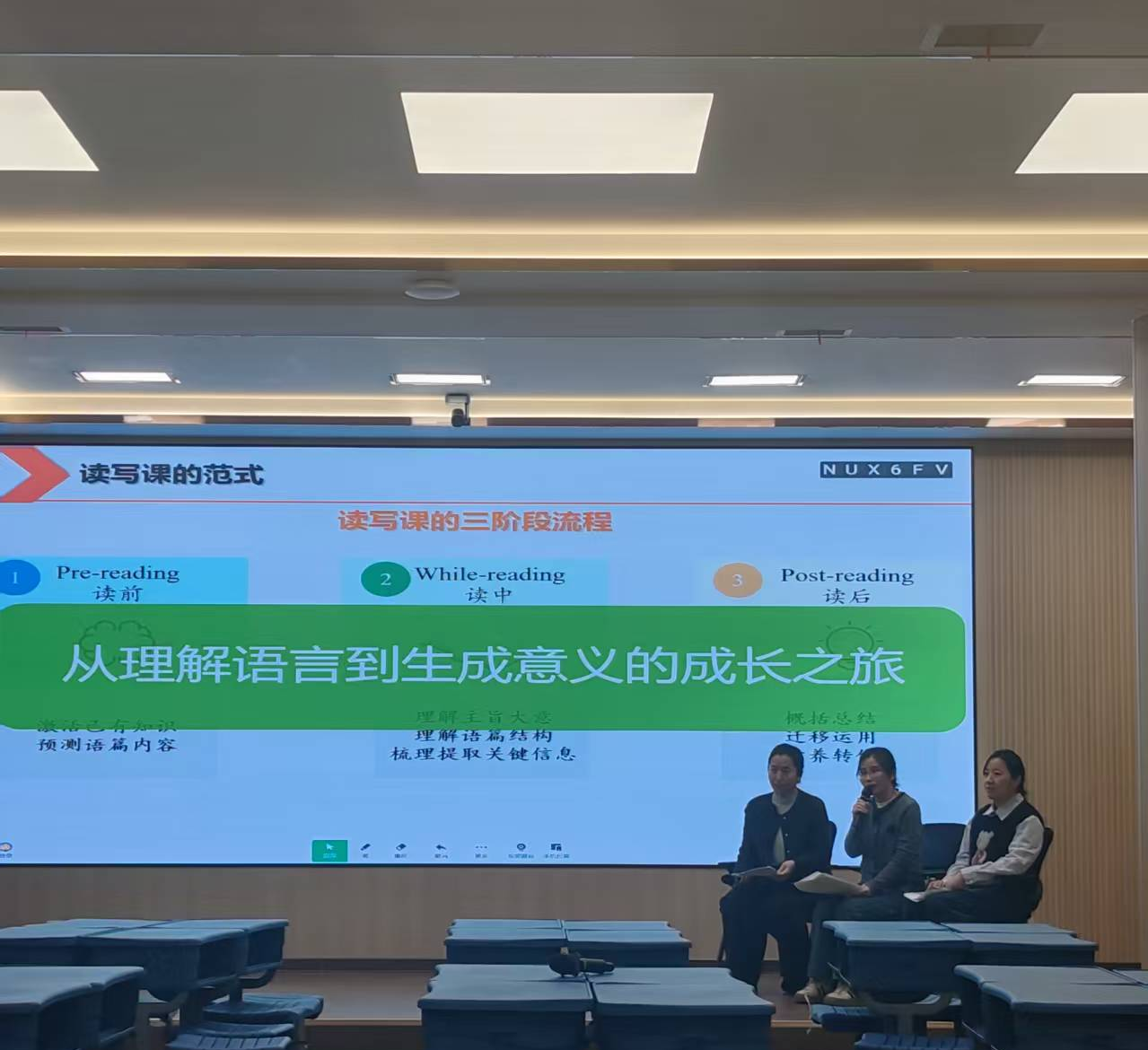 活动现场,宗文娟老师以其精湛的教学技艺,呈现了一节意趣与实效兼具的示范课,实现了语言学习与育人的有机融合。随后,姜丹苹、徐静、郭芳彤三位老师组成的说课团队则如抽丝剥茧,将匠心独运的教学设计、反复打磨的优化历程娓娓道来,充分展现了备课团队深厚的教研功底与协作精神。